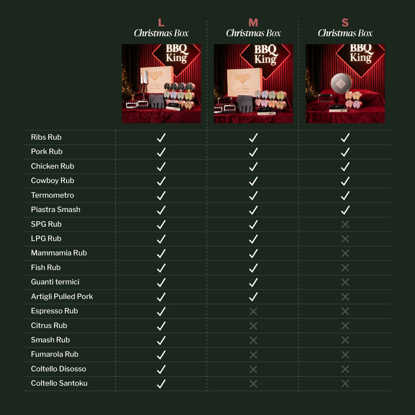 Le Box Regalo BBQ King sono il regalo ideale per ogni appassionato di barbecue. Ogni confezione include i migliori prodotti selezionati per rendere ogni grigliata speciale, perfette per ogni occasione importante!