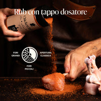 Rub nella latta: ti consiglio di NON versare il contenuto di erbe e spezie all’interno della latta ma di fare un taglio in un angolo del sacchetto in modo da usarlo come spargitore e poterlo richiudere su se stesso facendo uscire più aria possibile, chiudendolo con una molletta.