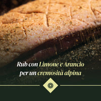 A bilanciare la brillante acidità degli agrumi entra in scena il burro in polvere delle Alpi, che armonizza il mix e avvolge la carne in un gusto rotondo e delicato. Il risultato è un rub capace di sgrassare le carni più ricche, come la pancetta o la costina, ma anche di elevare tagli magri o delicati, come petto di pollo o pesce bianco.