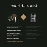 A rendere questa miscela ancora più straordinaria c’è l’aglio nero di Voghiera DOP, un prodotto d’eccellenza Made in Italy. Ottenuto con una fermentazione naturale di 60 giorni, l’aglio sviluppa note balsamiche e liquiriziose, senza l’aggiunta di additivi, lieviti o conservanti. Il risultato è un rub dal profumo avvolgente, dalla granulometria media e dalla forte identità aromatica, dove ogni ingrediente lavora in sinergia per esaltare le carni.