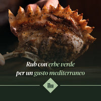 La miscela è sapientemente composta da cristalli di sale, erbe mediterranee come semi di finocchio, salvia, timo e alloro in foglie che rendono il rub estremamente profumato: tutti ingredienti che regaleranno al tuo piatto un aroma e una freschezza senza pari.