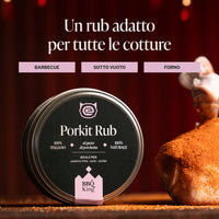 Il PorkIt è un Rub versatile ma deciso, capace di restituire il profumo inconfondibile del finocchietto, dell’aglio arrosto, della crosta croccante, dei succhi caramellati di una porchetta che cuoce lentamente.